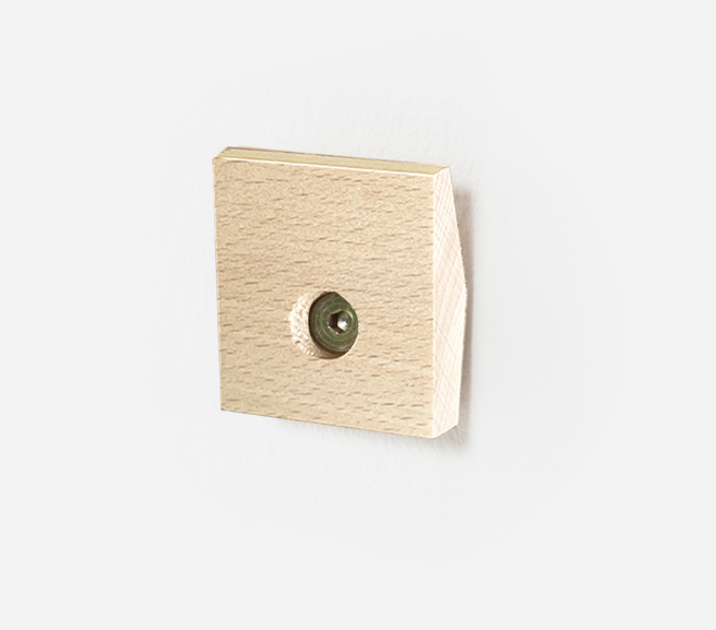- Solidny hak ścienny z litego dębu, zaprojektowany dla krzesełka KAOS Klapp.