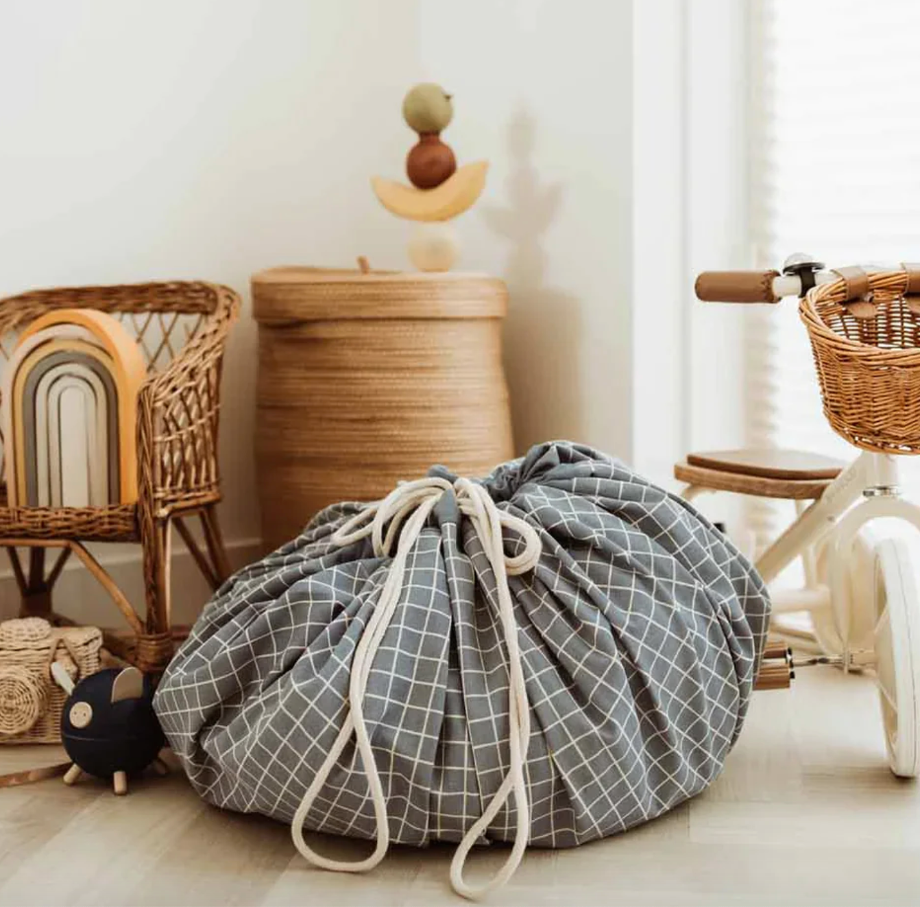 Oyuncak toplama işini bu yumuşacık organik pamuklu oyun matıyla saniyeler içinde kolaylaştırın - ip çekerek şık bir depolama çantasına dönüşür ve zamansız Grid Mavi deseni, bebek odasından oyun alanına her köşede zarif bir hava katar.
