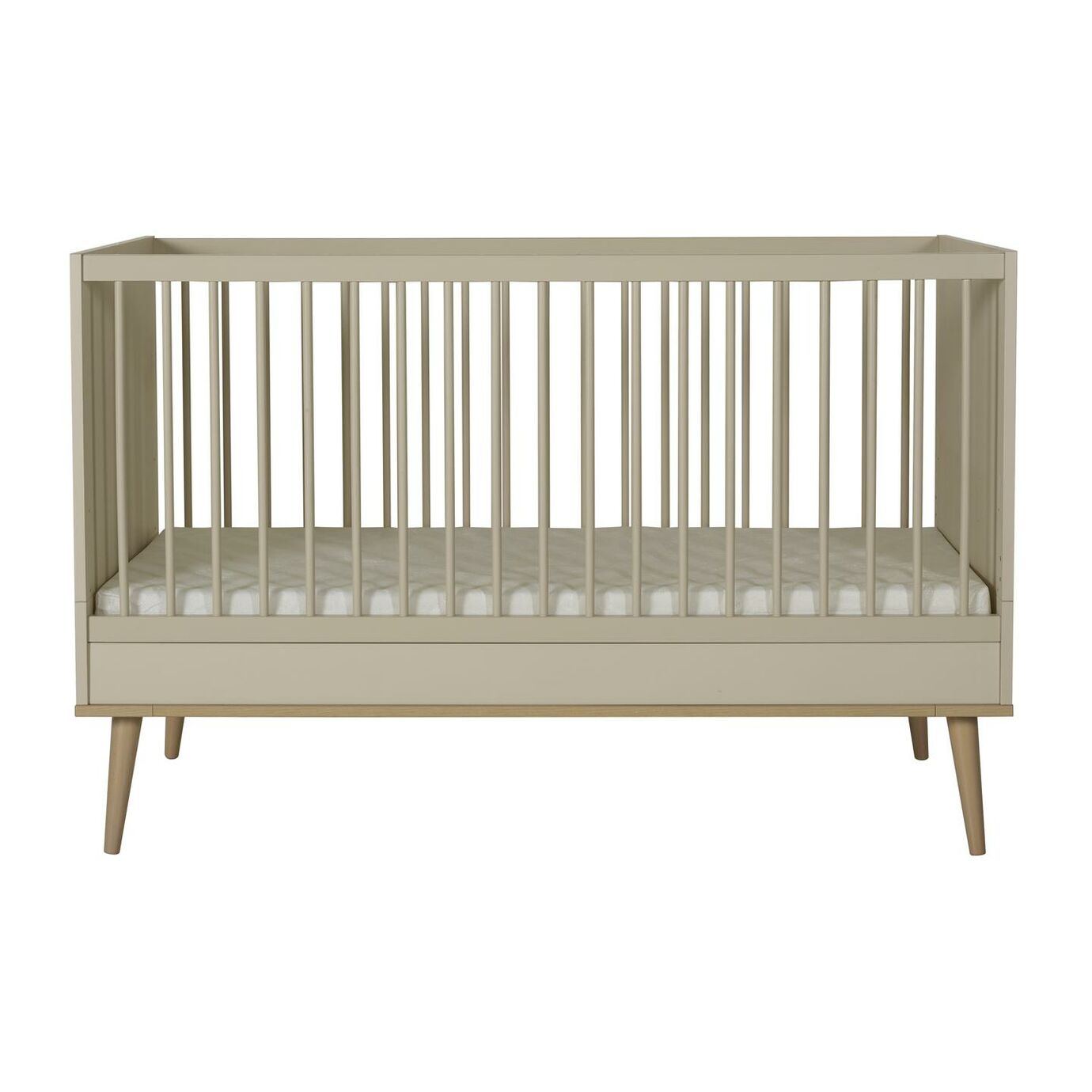 Sakin ve minimalist çizgileriyle bu dönüşebilir karyola, yuvanıza huzur taşırken küçük yavrunuzun büyümesine uyum sağlar - rahatça bebek karyolasından, zarif kayın detayları ve zamansız Kil kaplamasıyla açık çocuk yatağına dönüşür.